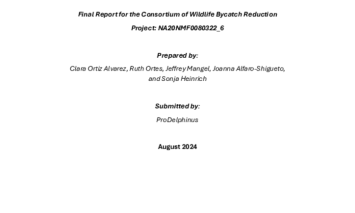 Publications Document ProDelphinus Final report 2024.pdf Project Partner(s) Pro-delphinus Publications More Fishing Gear Modifications Projects Cetacean Bycatch in Longlines Habitat Use by Loggerhead Sea Turtles International Marine Mammal - Gillnet Bycatch Mitigation Workshop International Marine Mammal - Longline Bycatch Mitigation Workshop International Marine Mammal Bycatch Assessment