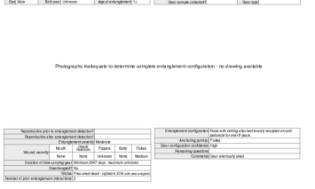 - A disentanglement responder team or a necropsy team was able to document how ropes and other gear were attached to the animal; and